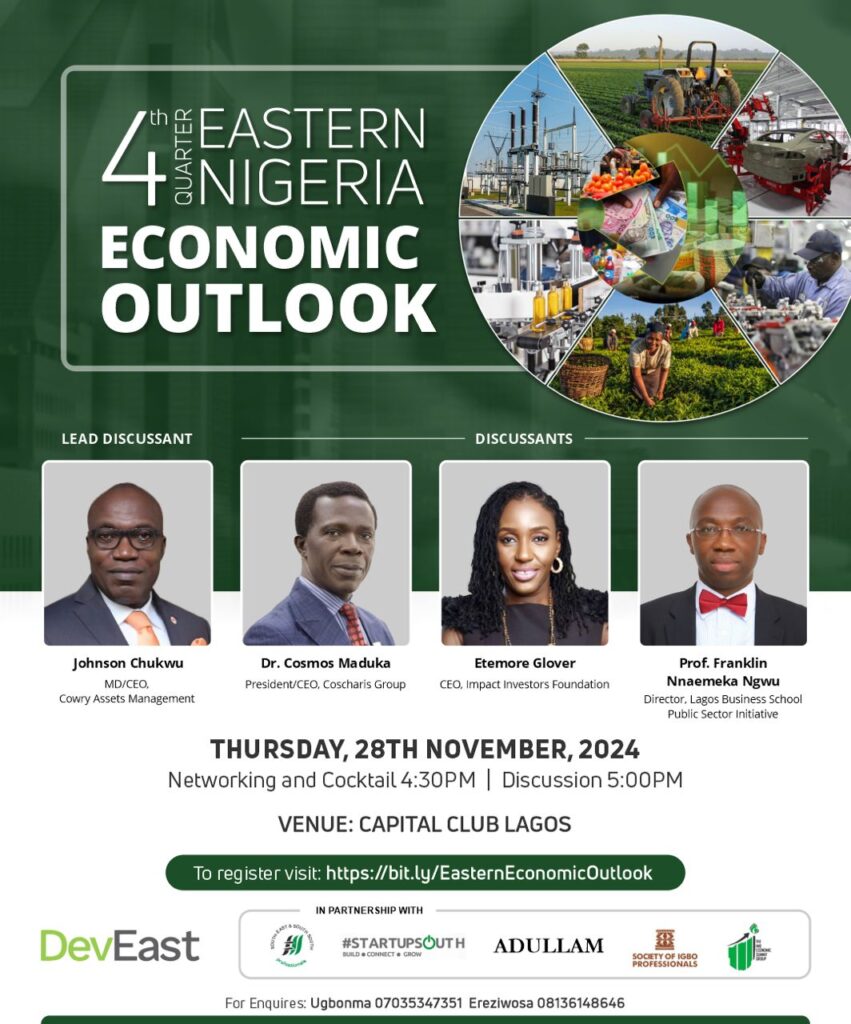 The DevEast 4th Quarter Eastern Nigeria Economic Outlook Event aims to drive sustainable economic development across Eastern and South-South Nigeria by gathering esteemed voices in economics, business, and policy.